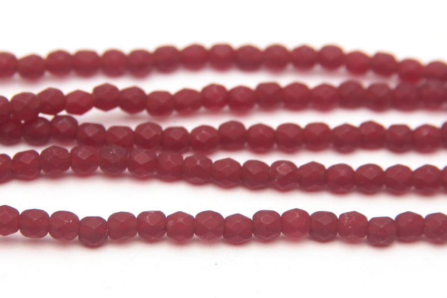 3mm facetted round beads in Frosted Garnet. These gorgeous beads, produced in the Czech Republic, are machine cut for extreme precision and made with the highest quality, locally produced glass – 50 beads per strand