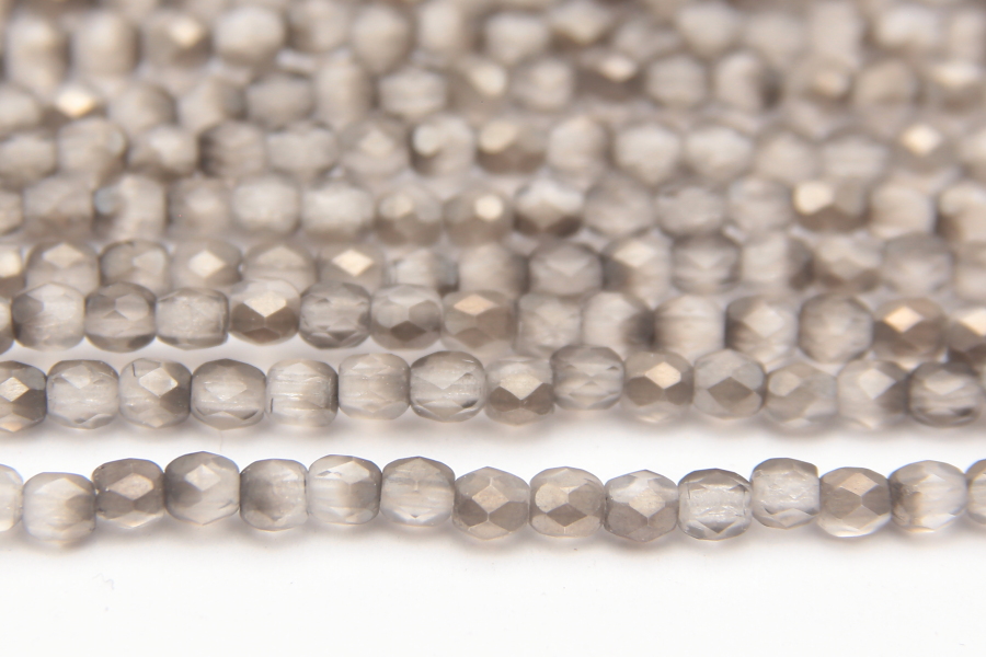 3mm Frosted Slate Coated Pebble Grey Firepolished Czech Glass