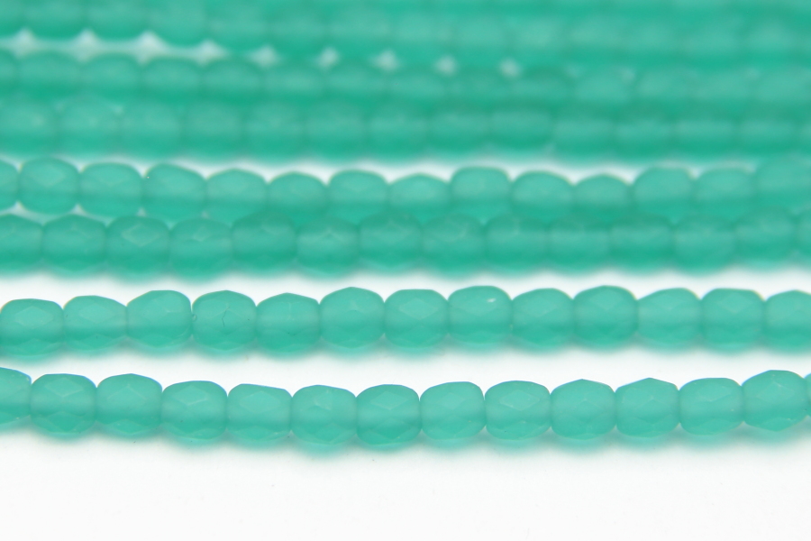 3mm facetted round beads in Frosted Teal. These gorgeous beads, produced in the Czech Republic, are machine cut for extreme precision and made with the highest quality, locally produced glass – 50 beads per strand