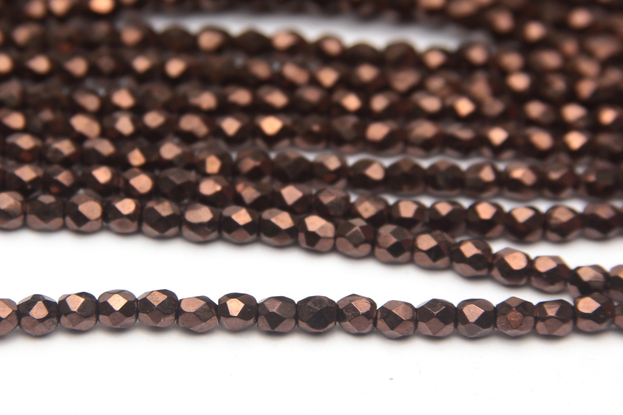 3mm Metallic Burnt Cinamon Firepolished Czech Glass
