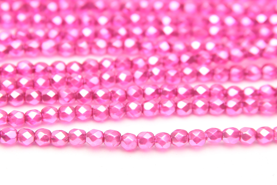 3mm facetted round beads in Metallic Pearlised Hot Pink. These gorgeous beads, produced in the Czech Republic, are machine cut for extreme precision and made with the highest quality, locally produced glass – 50 beads per strand