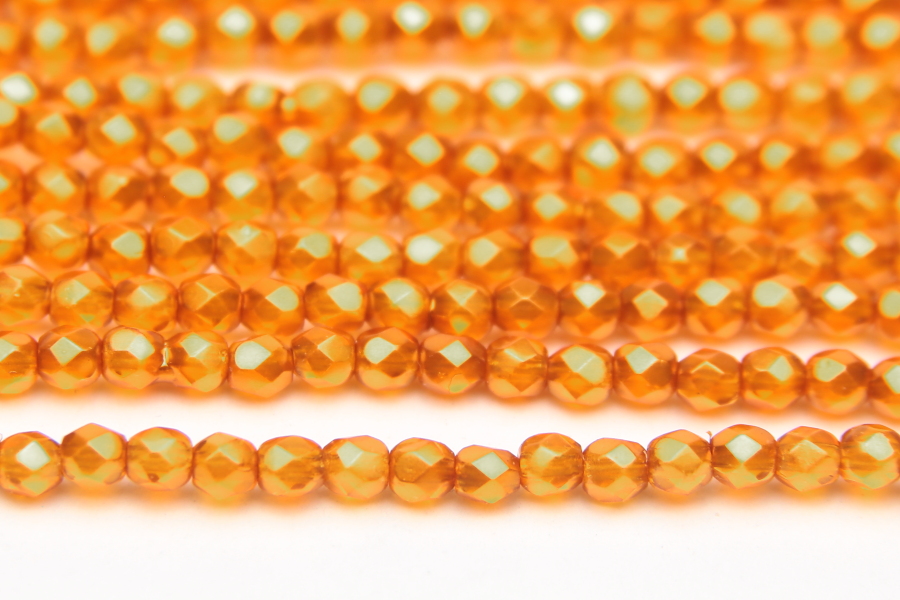 3mm Metallic Pearlised Pumpkin Firepolished Czech Glass