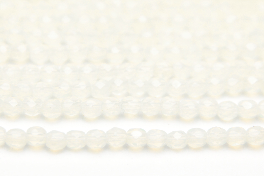 3mm facetted round beads in Milky Lemon Tart Lustre. These gorgeous beads, produced in the Czech Republic, are machine cut for extreme precision and made with the highest quality, locally produced glass – 50 beads per strand