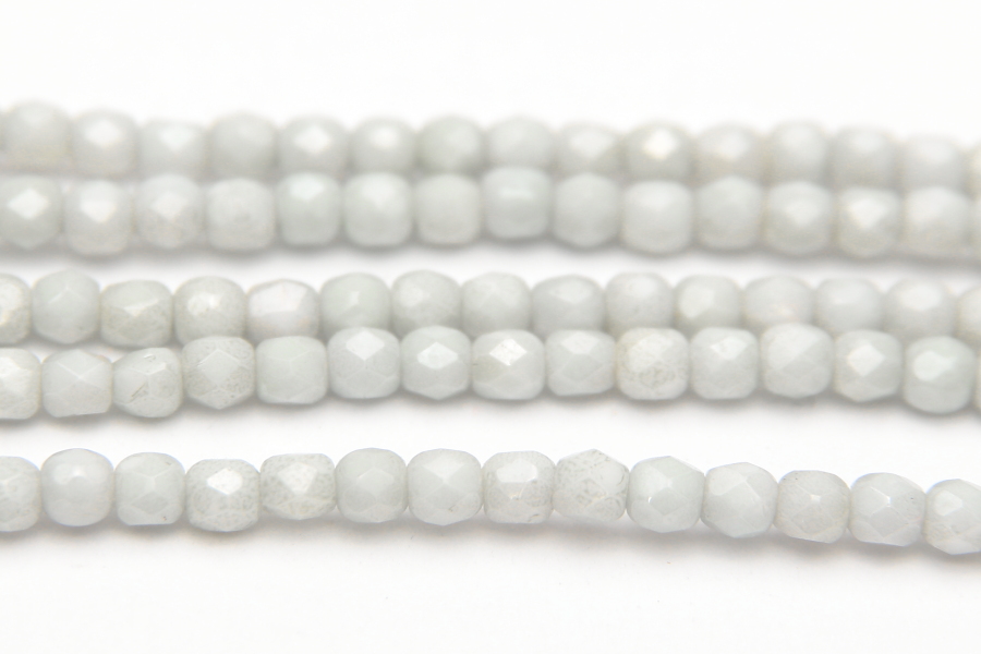 3mm facetted round beads in Opaque Pebble Grey. These gorgeous beads, produced in the Czech Republic, are machine cut for extreme precision and made with the highest quality, locally produced glass – 50 beads per strand