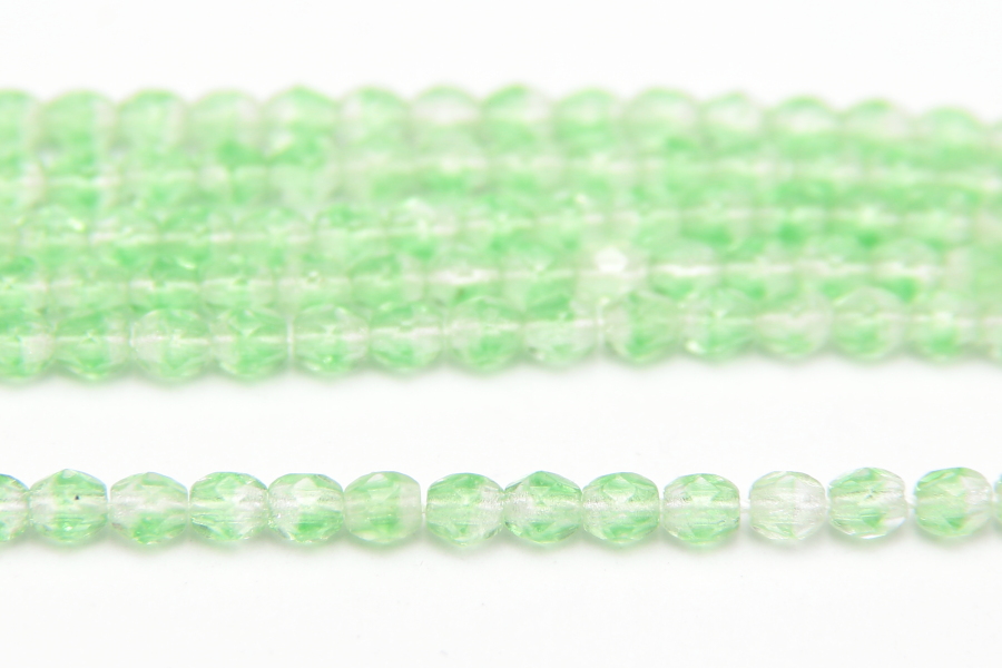 3mm facetted round beads in Transparent Apple Crystal Lustre. These gorgeous beads, produced in the Czech Republic, are machine cut for extreme precision and made with the highest quality, locally produced glass – 50 beads per strand