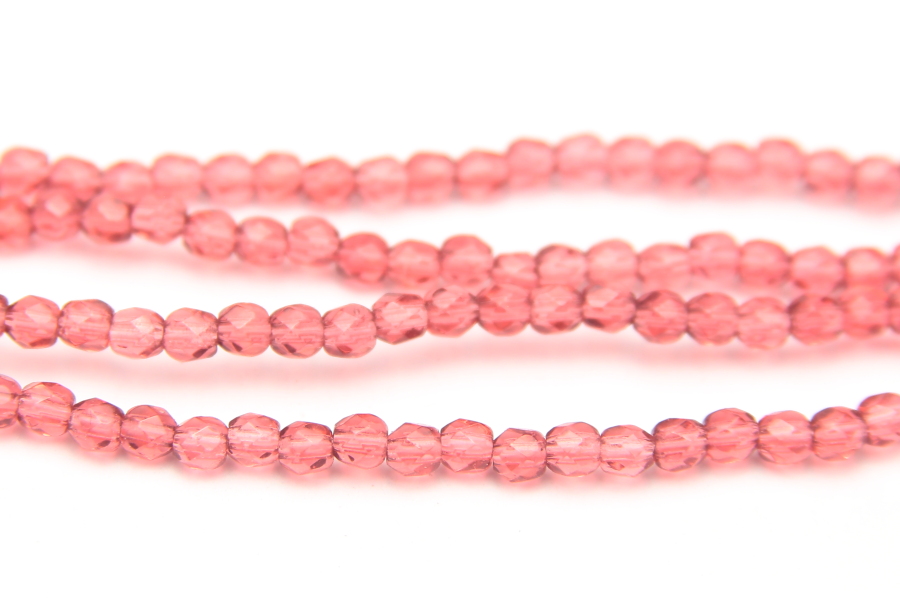 3mm facetted round beads in Transparent Moroccan Velvet. These gorgeous beads, produced in the Czech Republic, are machine cut for extreme precision and made with the highest quality, locally produced glass – 50 beads per strand