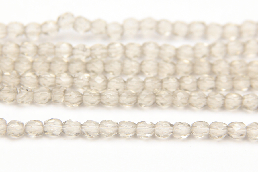 3mm facetted round beads in Transparent Tranquil Dawn. These gorgeous beads, produced in the Czech Republic, are machine cut for extreme precision and made with the highest quality, locally produced glass – 50 beads per strand