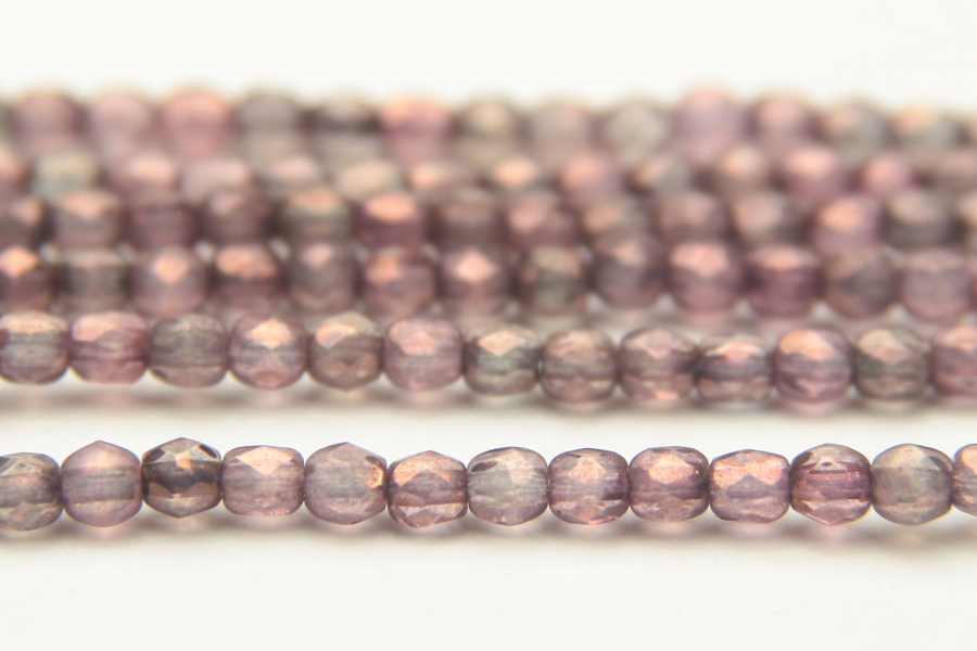 3mm Copper Violet Lustred Transparent Amethyst Firepolished Czech Glass