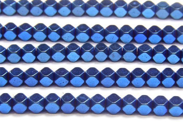 Electric Blue Hematite, facetted Cubes 3mm 8in Strand