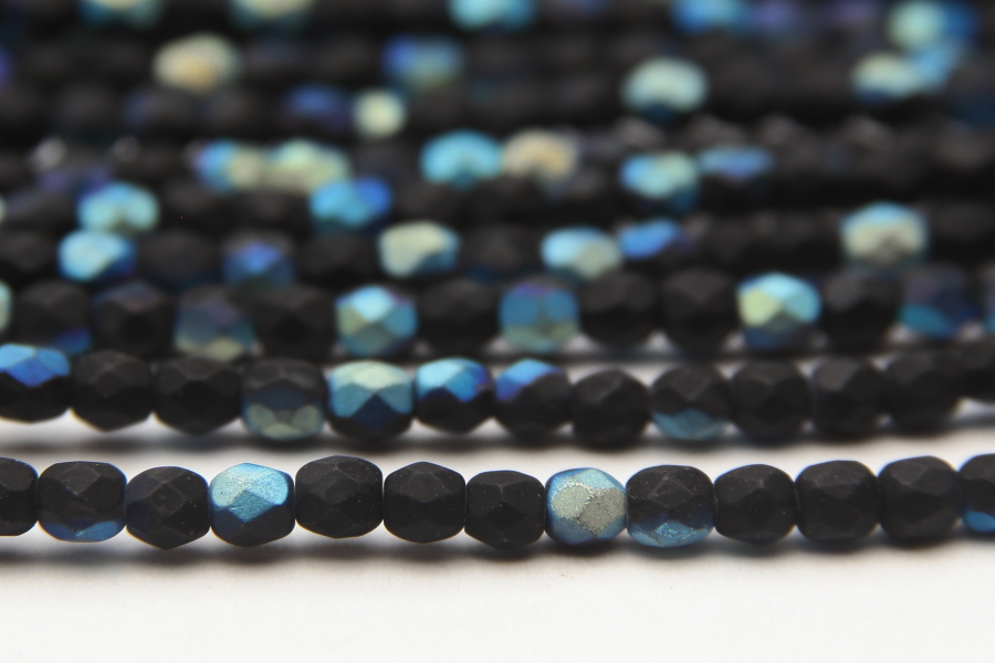 3mm Matte Metallic Celestial Jet Firepolished Czech Glass