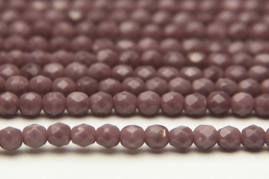 3mm facetted round beads in Opaque Passion Flower. These gorgeous beads, produced in the Czech Republic, are machine cut for extreme precision and made with the highest quality, locally produced glass – 50 beads per strand