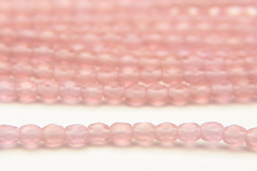 3mm facetted round beads in Frosted Verona Violet. These gorgeous beads, produced in the Czech Republic, are machine cut for extreme precision and made with the highest quality, locally produced glass – 50 beads per strand
