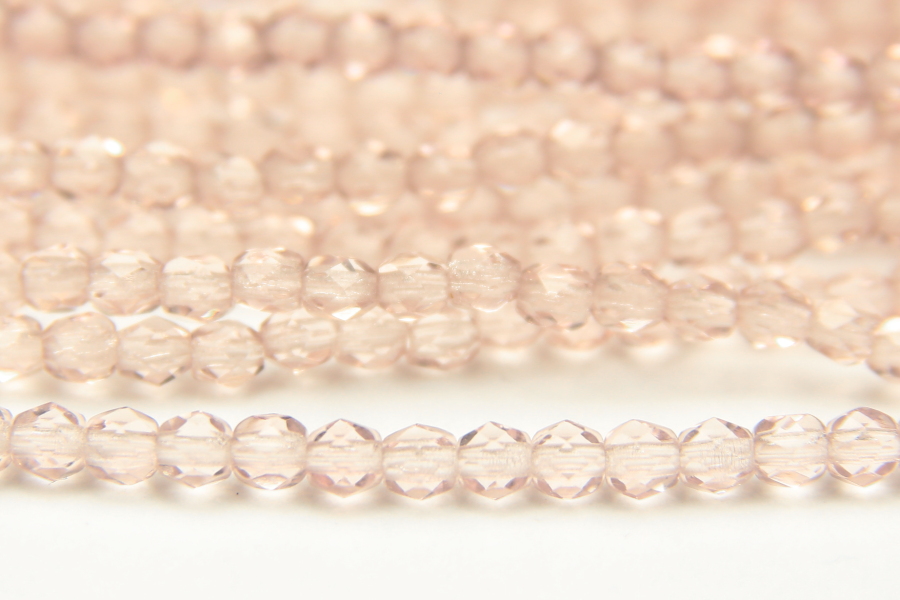 3mm facetted round beads in Transparent Amethyst Mist Lustre. These gorgeous beads, produced in the Czech Republic, are machine cut for extreme precision and made with the highest quality, locally produced glass – 50 beads per strand