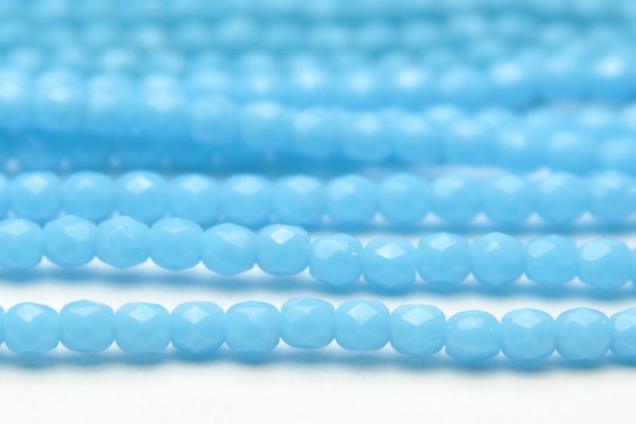 3mm facetted round beads in Opaque Fresh Blue. These gorgeous beads, produced in the Czech Republic, are machine cut for extreme precision and made with the highest quality, locally produced glass – 50 beads per strand