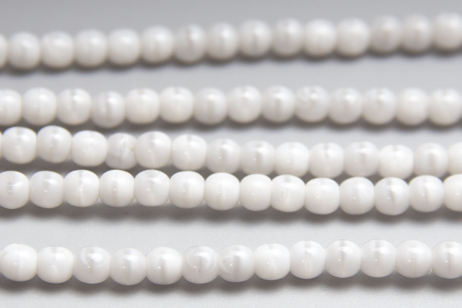 4mm round beads in Milky White Grey. These beautiful pressed glass beads, produced in the Czech Republic, are made by hand from the highest quality locally produced glass – 60 beads per pack