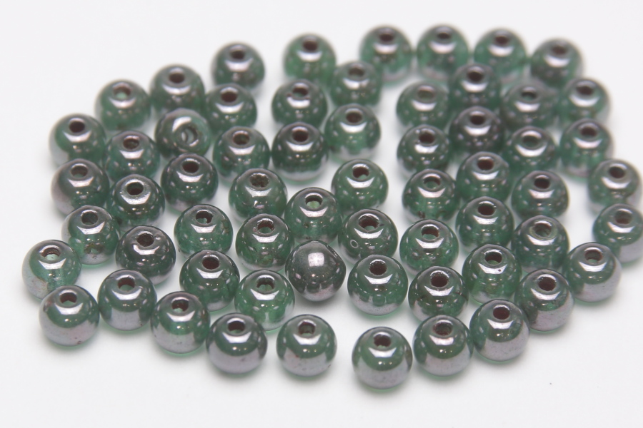 4mm round beads in Moss Hematite. These beautiful pressed glass beads, produced in the Czech Republic, are made by hand from the highest quality locally produced glass – 60 beads per pack