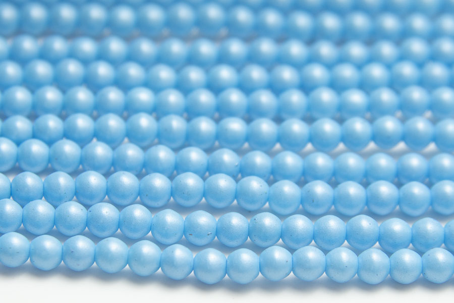 4mm round beads in Satin Azure. These beautiful pressed glass beads, produced in the Czech Republic, are made by hand from the highest quality locally produced glass – 60 beads per pack
