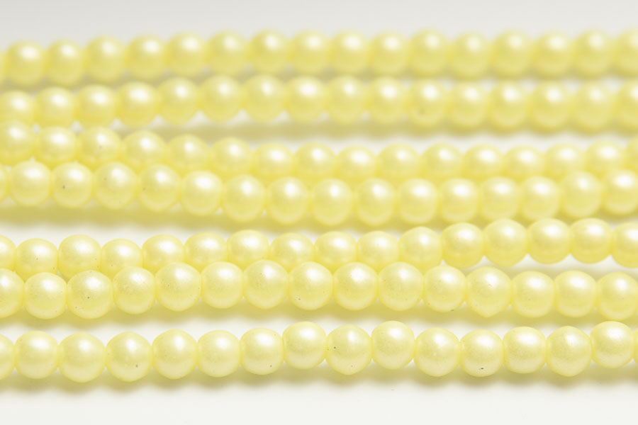 4mm round beads in Satin Canary Yellow. These beautiful pressed glass beads, produced in the Czech Republic, are made by hand from the highest quality locally produced glass – 60 beads per pack