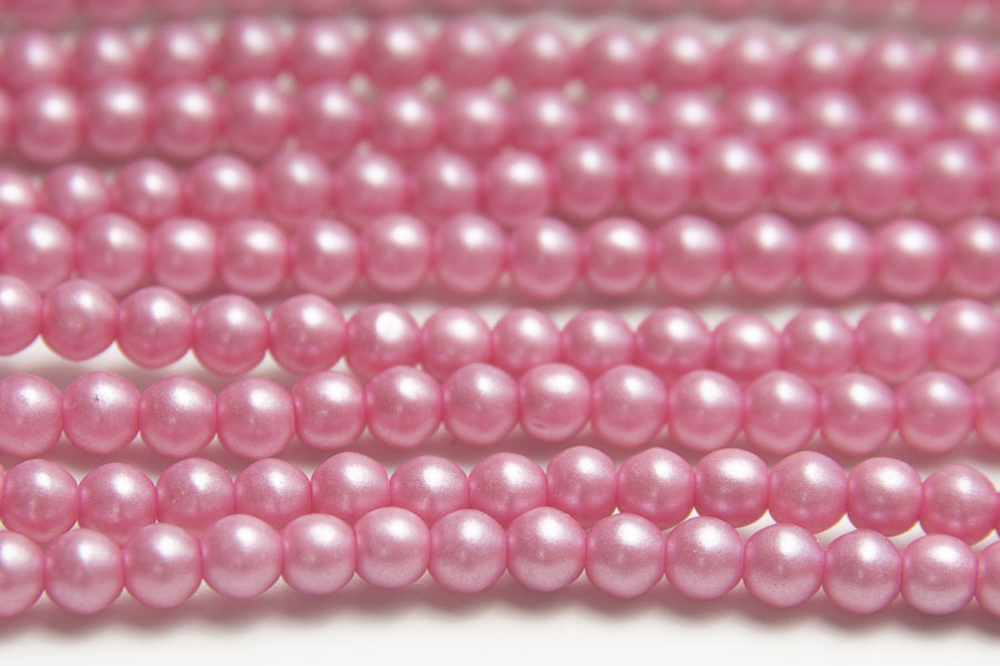 4mm Satin Candy Pink Round Czech Glass Beads