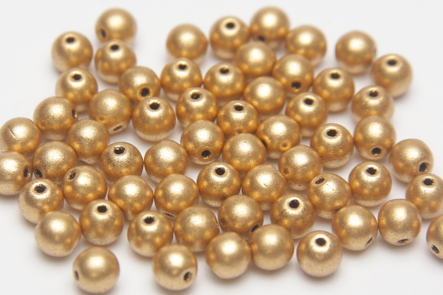 4mm round beads in Satin Gold. These beautiful pressed glass beads, produced in the Czech Republic, are made by hand from the highest quality locally produced glass – 60 beads per pack