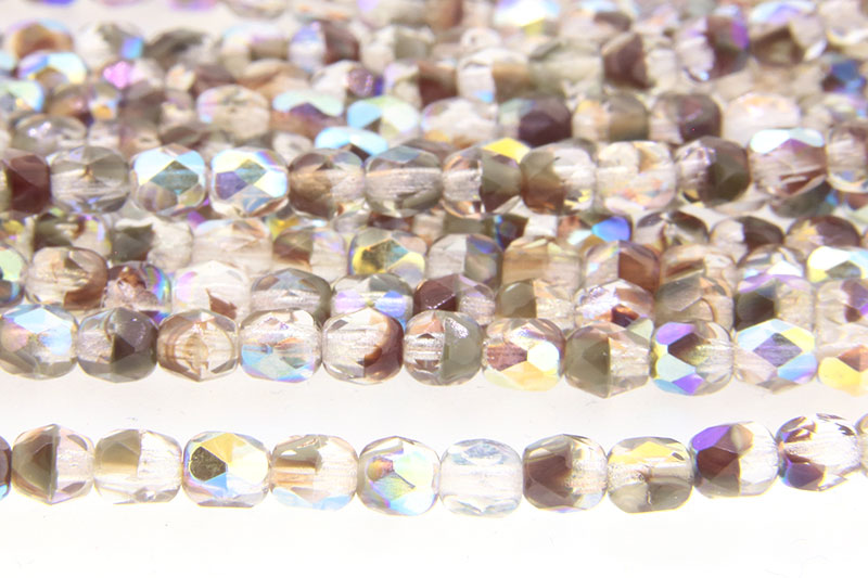 Tags: 4mm, 4mm Czech Glass Beads, AB Coated Coffee and Clear Hurricane, beads, Czech Glass, czech glass beads