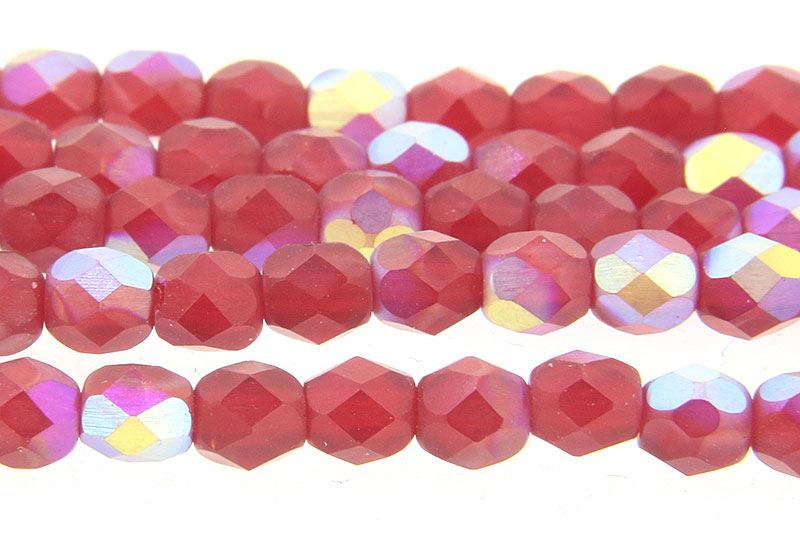 4mm AB Lustred Frosted Ruby Czech Glass, 50 Fire Polished beads