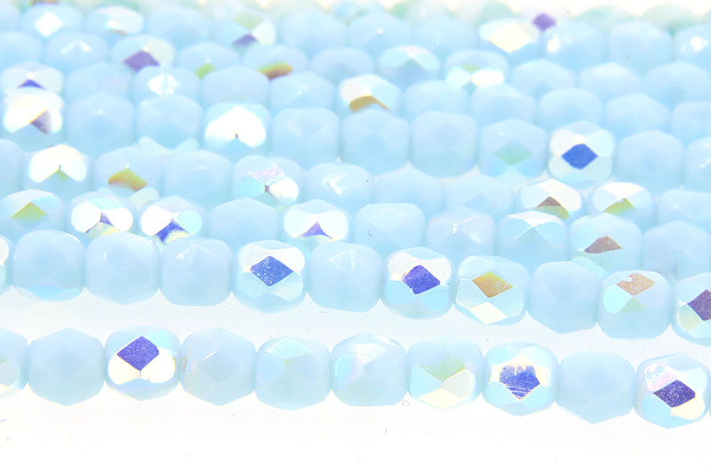 4mm AB Lustred Opaque Baby Blue Czech Glass, 50 Fire Polished beads