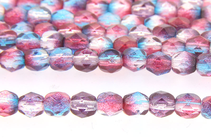 4mm Cranberry Azure Hurricane Czech Glass, 50 Fire Polished beads