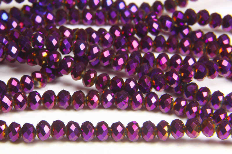 Size 3x4mm Electric Crimson Crystal Donuts, 18″ strand approx 150 beads