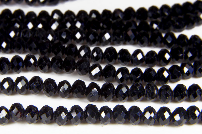 Size 3x4mm Jet Black Crystal Donuts, 18″ strand approx 150 beads