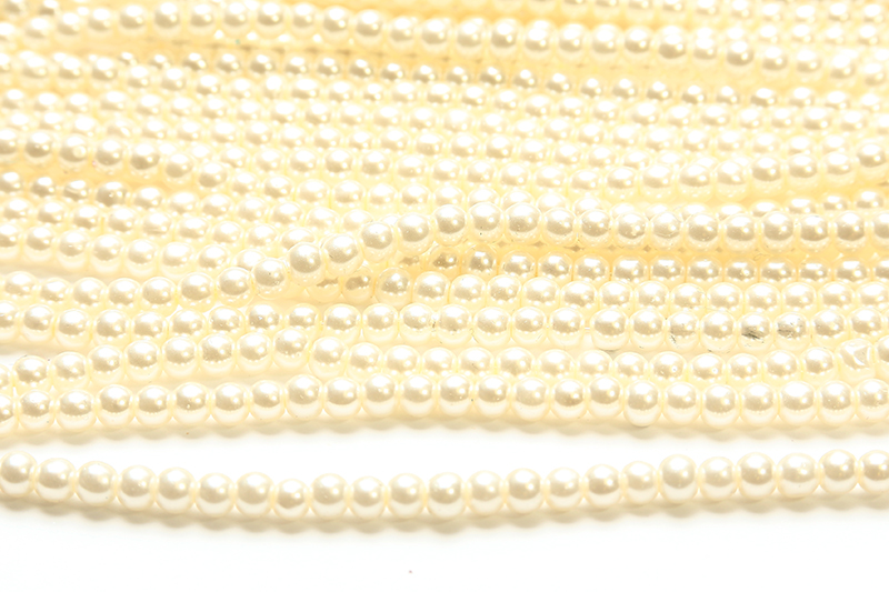 4mm Light Cream Glass Pearls, 16 Inch Strand
