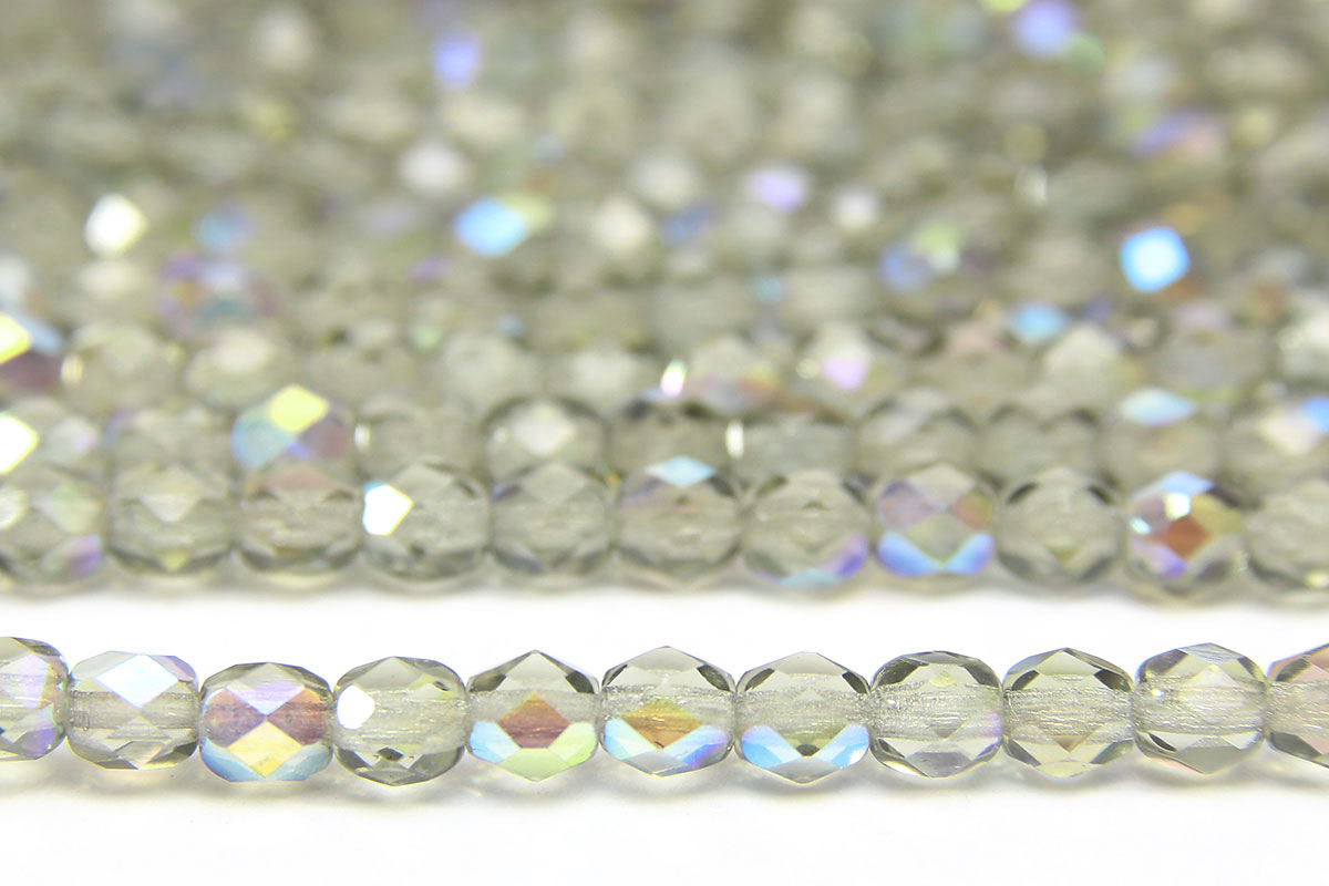 4mm Lustred Transparent Mist Czech Glass, 50 Fire Polished beads