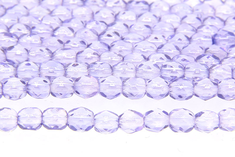4mm Lustred Transparent Mauve Czech Glass, 50 Fire Polished beads