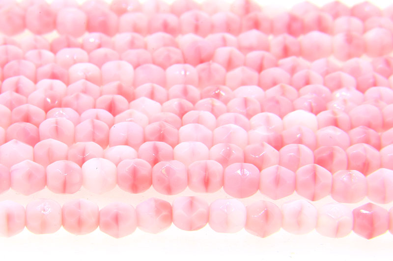 4mm Opaque Strawberry Milk Swirl Czech Glass, 50 Fire Polished beads