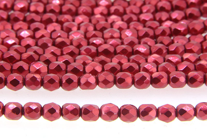 Satin Metallic Ruby Czech Glass