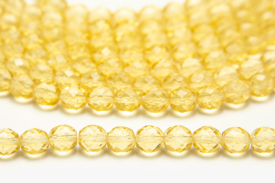 8mm Amber Yellow Transparent Crystal Fire Polished Czech Glass