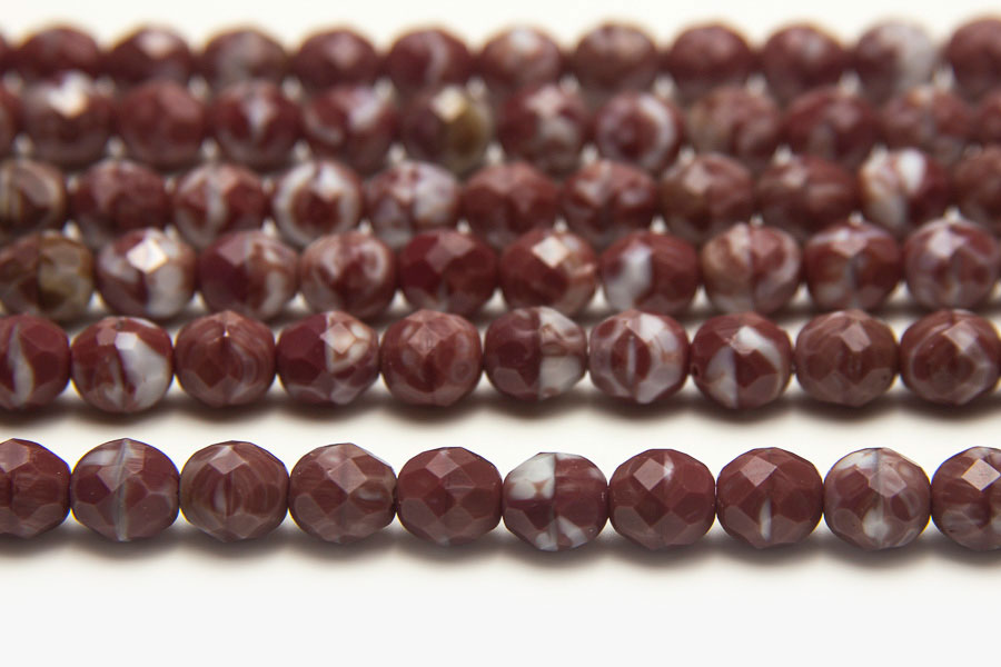 These gorgeous Burgundy White Opaque Hurricane beads are made from premium quality Czech glass and then fire polished for a brilliant shine and luster. Each of these 8mm Round Czech Glass beads are manufactured to a very high degree of precision in both shape and colour uniformity. There are 16 beads in one packet.