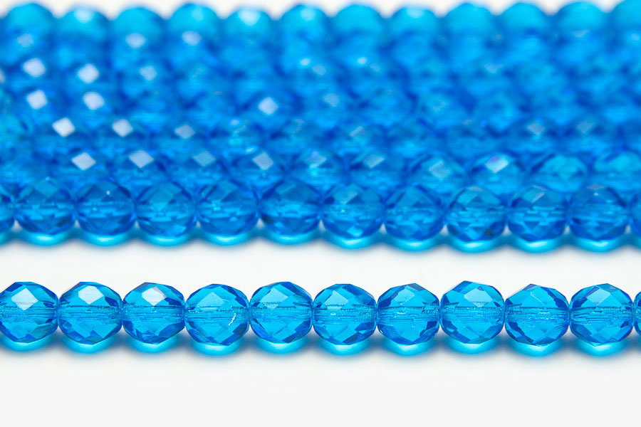 8mm Cobalt Blue Transparent Crystal Fire Polished Czech Glass