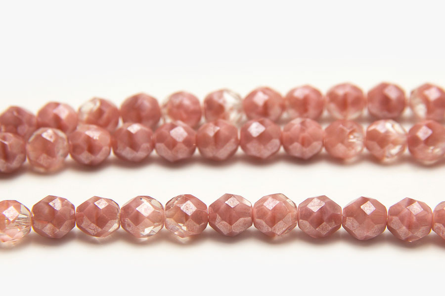 8mm Dusky Pink Hurricane Lustre Fire Polished Czech Glass