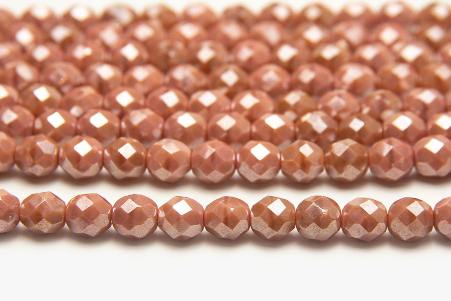 8mm Dusky Pink Opaque Lustre Fire Polished Czech Glass