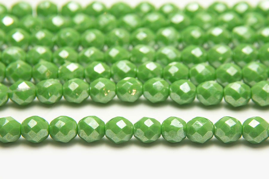 8mm Green Opaque Lustre Fire Polished Czech Glass