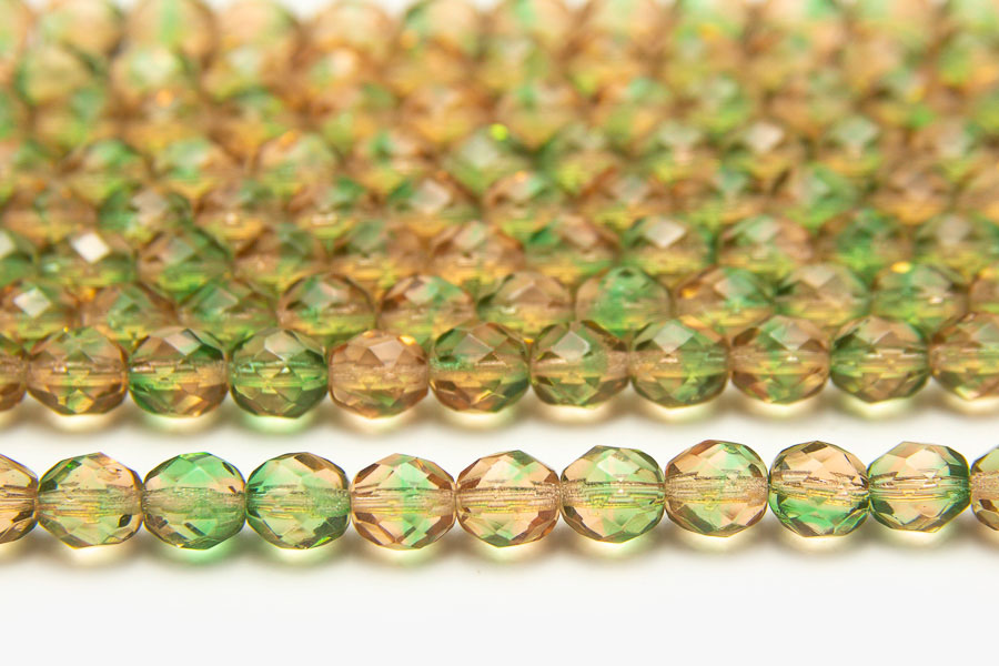 These gorgeous Green Tan Crystal Hurricane beads are made from premium quality Czech glass and then fire polished for a brilliant shine and luster. Each of these 8mm Round Czech Glass beads are manufactured to a very high degree of precision in both shape and colour uniformity. There are 16 beads in one packet.