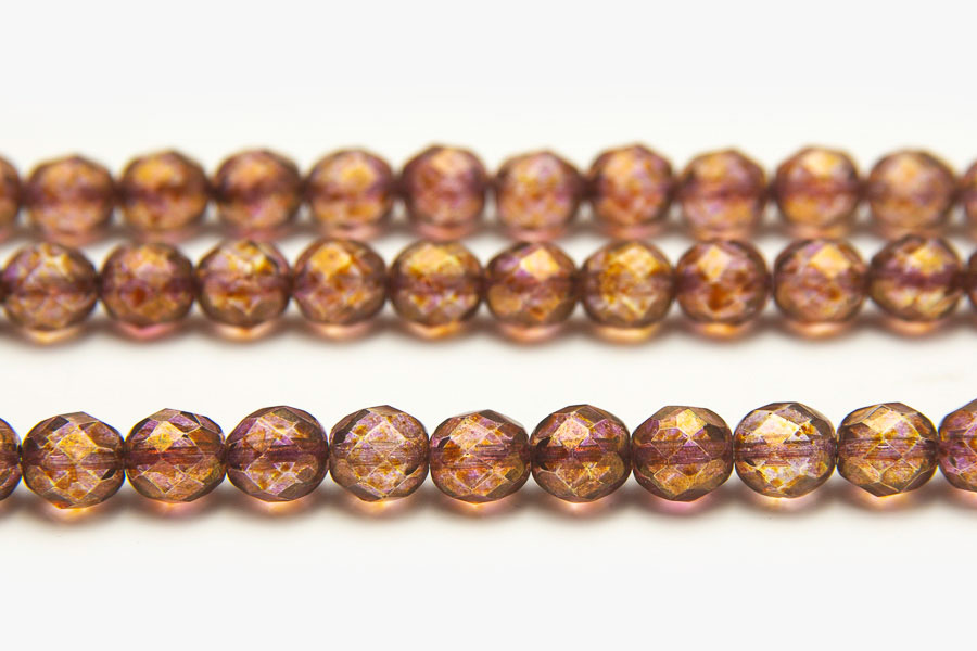 8mm Magenta Gold Crystal Coated Lustre Fire Polished Czech Glass