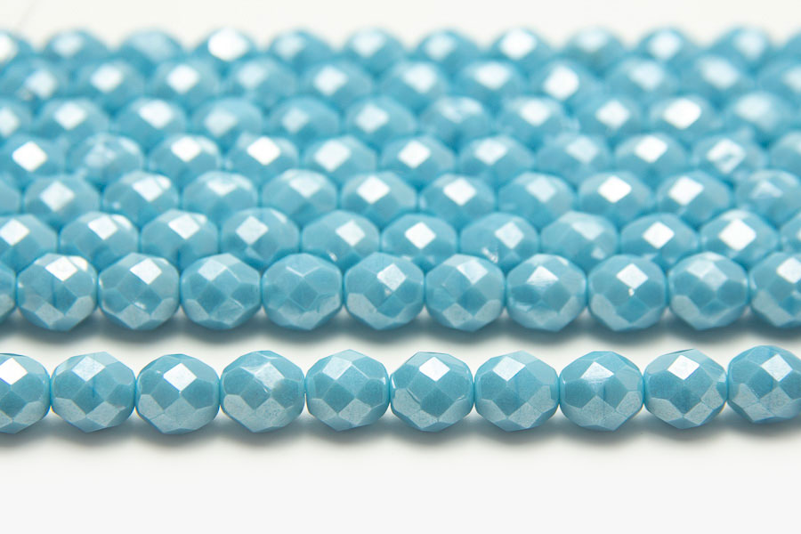 8mm Maya Blue Opaque Lustre Fire Polished Czech Glass