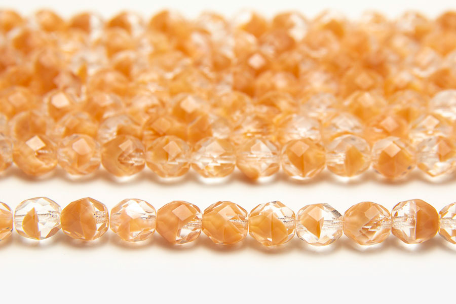 8mm Peach Nude Crystal Hurricane Fire Polished Czech Glass