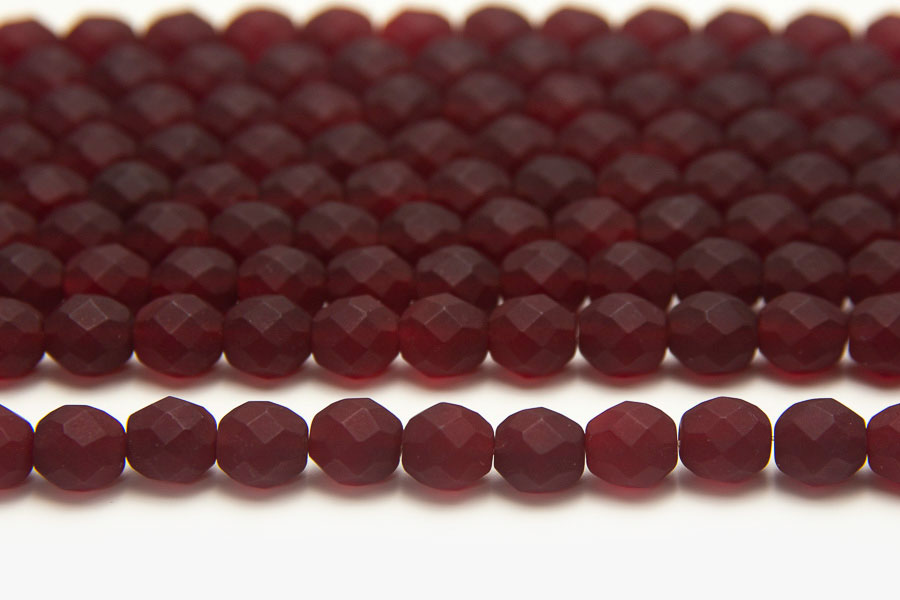 8mm Red Wine Frosted Fire Polished Czech Glass