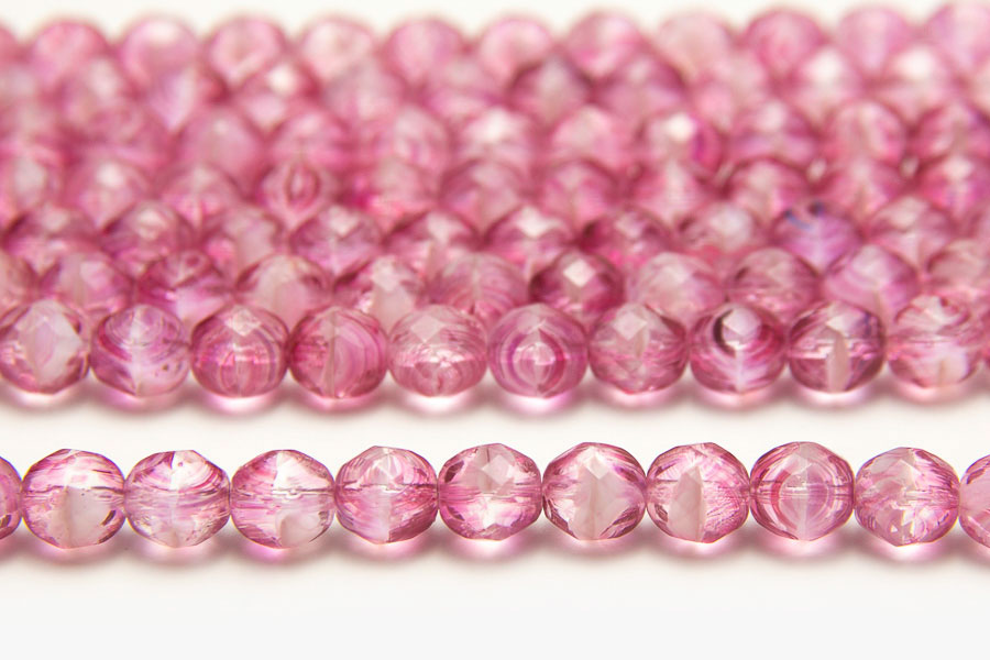 These gorgeous Rose Pink White Crystal Hurricane beads are made from premium quality Czech glass and then fire polished for a brilliant shine and luster. Each of these 8mm Round Czech Glass beads are manufactured to a very high degree of precision in both shape and colour uniformity. There are 16 beads in one packet.