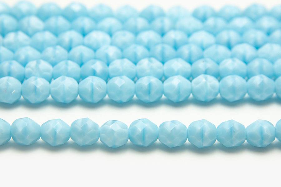 8mm Sky Blue Opaque Glacier Fire Polished Czech Glass
