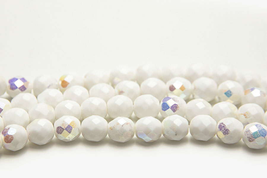 8mm White Opaque Demi AB Fire Polished Czech Glass