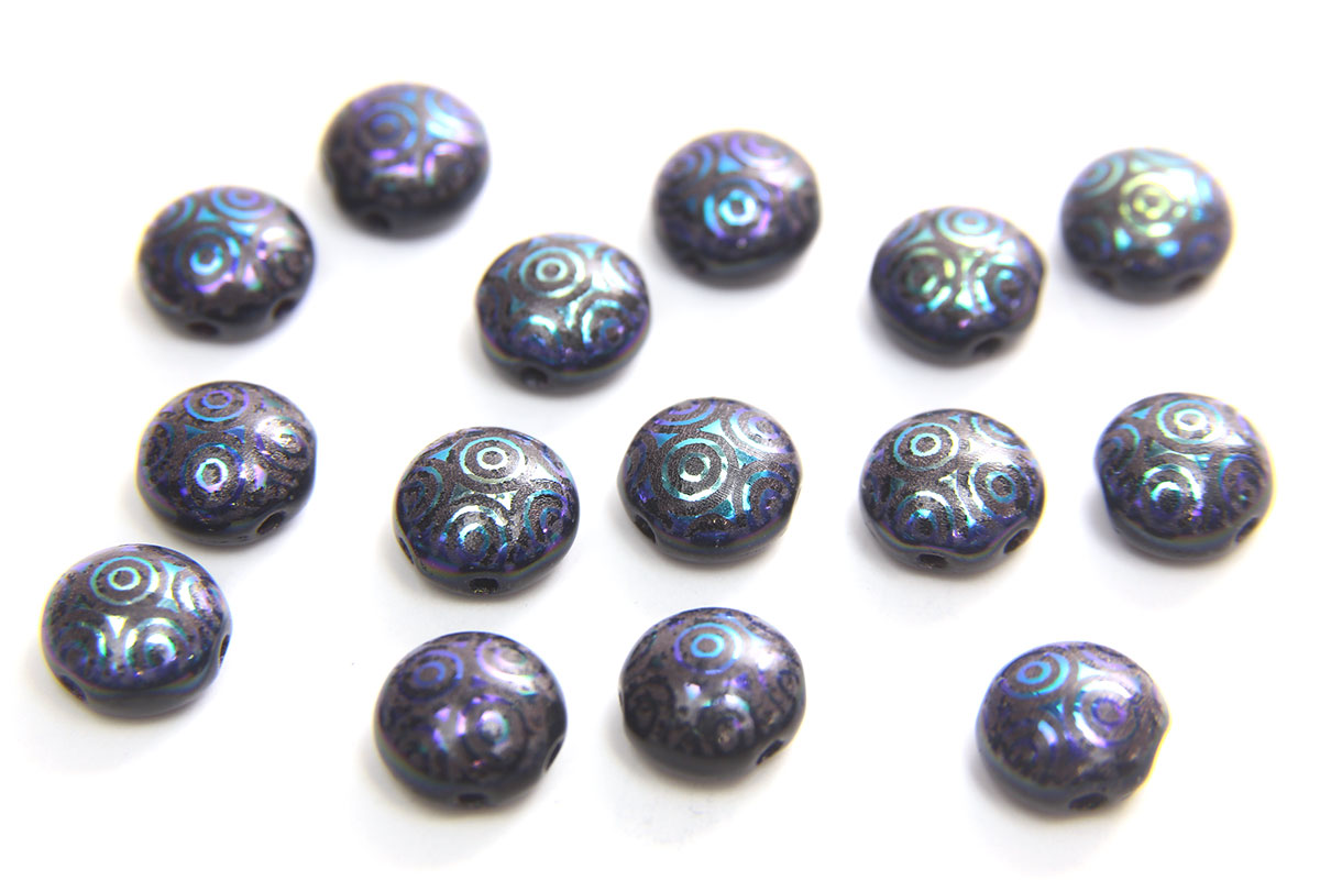 Midnight Gold Stencil 8mm 2-HolePreciosa Candy Beads, 15 pieces